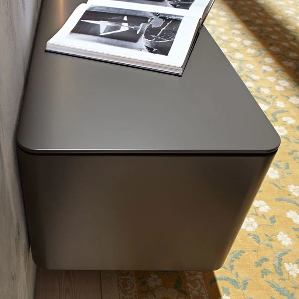 - 1x 2R Lowboard mit einseitig gerundetem Abschluss mit 1 Klappe – Breite: 70,4 cm, Höhe: 36,2 cm, Tiefe: 45 cm (Oberfläche wie Lowboard #1)