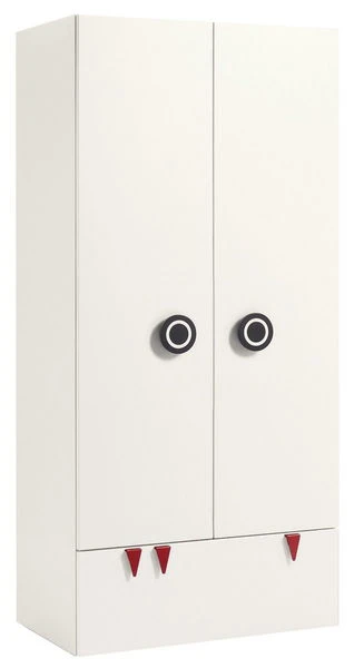 Der Kleiderschrank ist mit 2 Türen und 1 Schublade mit gedämpftem Selbsteinzug ausgestattet. Innen befinden sich 1 Einlegeboden und 1 Kleiderstange.