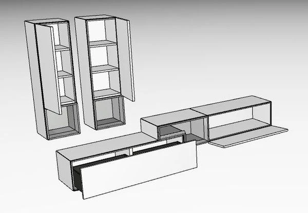 - drei LED-Rahmenbeleuchtungen zur Montage in die Rahmen der offenen Fächer (Hängeelemente: 9 W, Lowboard: 14,5 W)