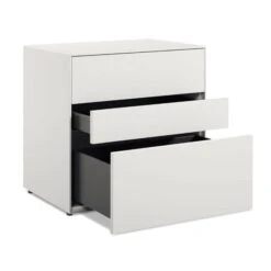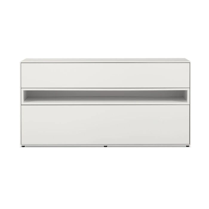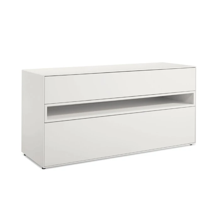 - Front und Korpus aus Spanplatte in Lack reinweiß