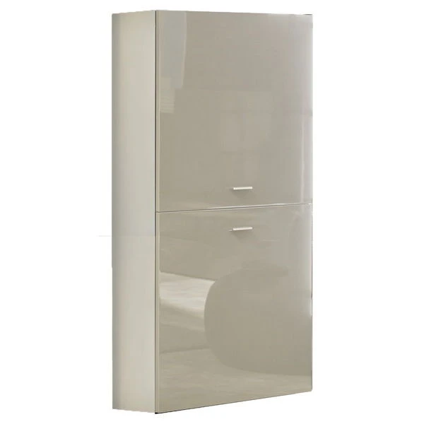 Der Korpus dieses Hängebaukasten ist in Lack-seidengrau gehalten. Die Front ist in Lack-Hochglanz-seidengrau.