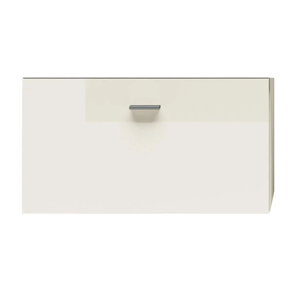 Der Korpus dieses Hängebaukasten ist in Lack-weiß gehalten. Die Front ist in Lack-Hochglanz-weiß.