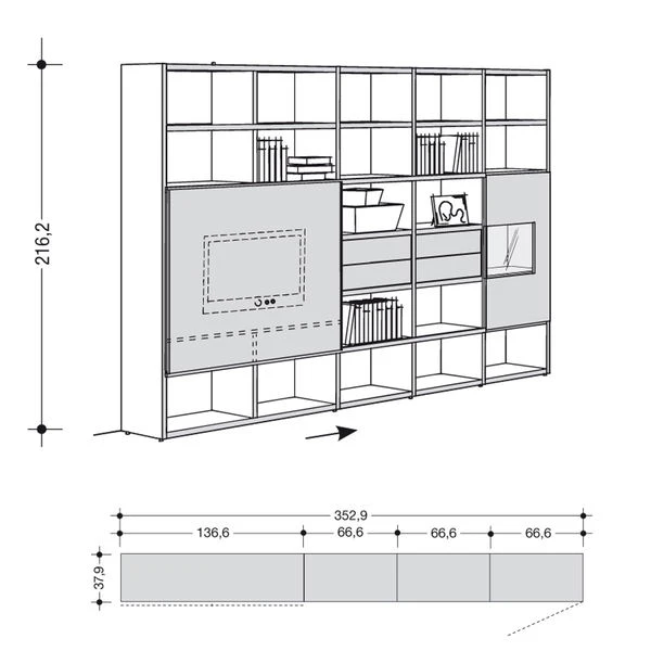 Gesamt: 216,2 x 352,9 x 37,9 cm (H x B x T)
