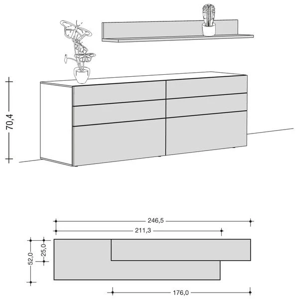 Gesamt: 70,4 x 246,5 x 52,0 cm (H x B x T)