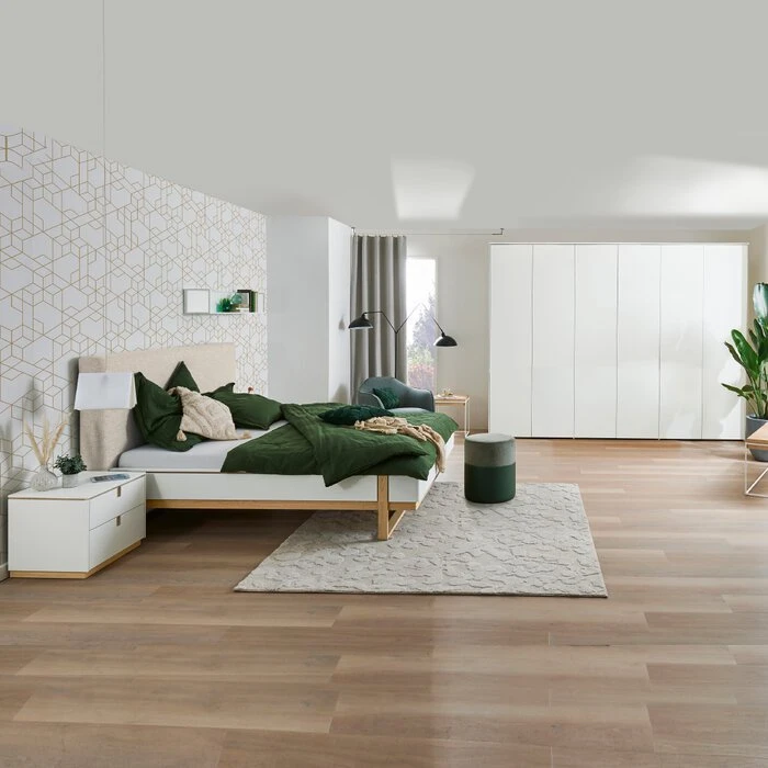 - Set besteht aus Bett 180 x 200 cm, Kleiderschrank 302 x 230 cm und 2x Nachttische