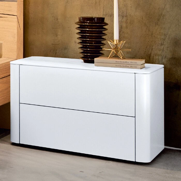 - Aus Spanplatte mit Lack in reinweiß