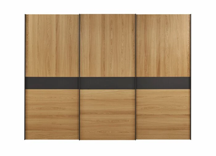 - Front aus furnierter Eiche Natur mit Bauchbinde in Lack anthrazit