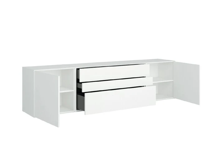 - Front und Korpus aus Spanplatte in Lack reinweiß