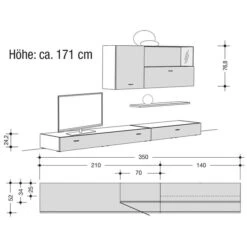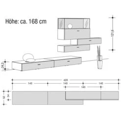 Now! No.14 By Hülsta Kombination 8 168x420x52 Kernnussbaum/Lack-seidengrau/Hochglanz-seidengrau