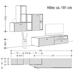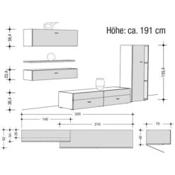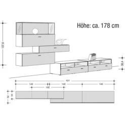 Now! No.14 By Hülsta Kombination 12 178x431x52 Kernnussbaum/Lack-seidengrau/Hochglanz-seidengrau